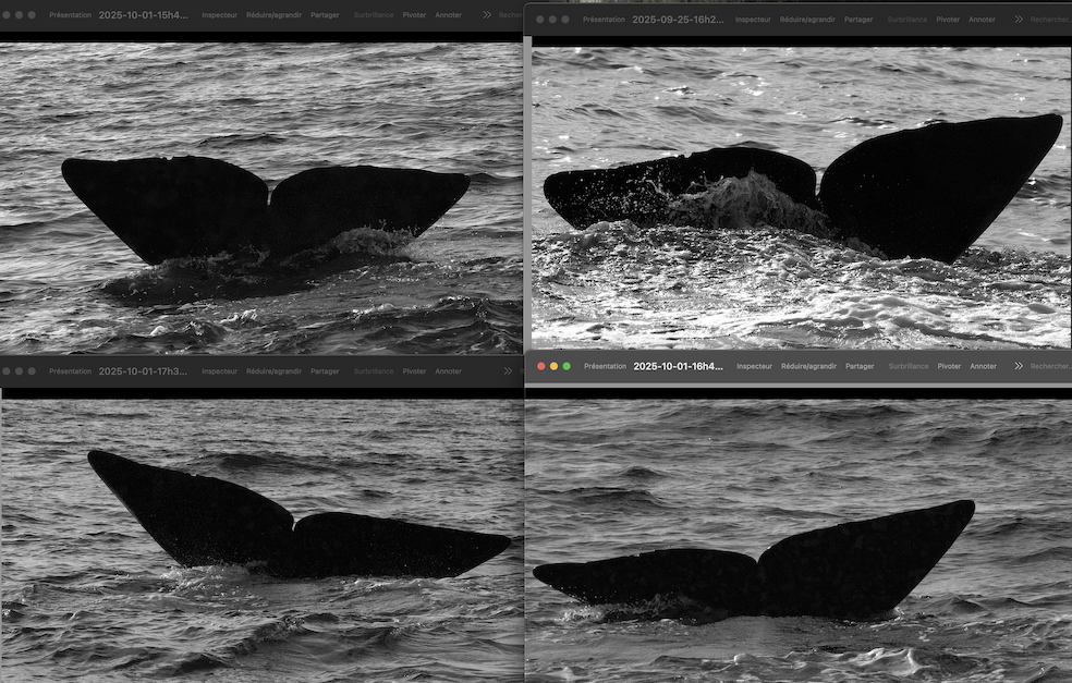 Les rencontres se sont ensuite succédé, jour après jour, si bien que nous avons à ce jour une vingtaine de nouvelles cartes d’identité ! Ces cartes détaillées s’ajouteront au catalogue qui en comptera près de 80. 80 cachalots que nous pouvons désormais suivre très précisément et dont nous espérons retracer l’histoire.