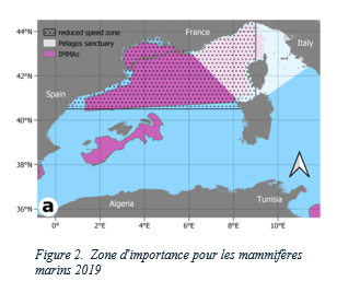 Rappelons qu’en Méditerranée, où les populations de cétacés sont particulièrement dispersées, la réduction de vitesse, sans toutefois être obligatoire, est considérée par le ministère de la transition écologique et solidaire comme : « une mesure adaptée, facile à appliquer, efficace et dont la mise en place à grande échelle est vivement préconisée »[11].